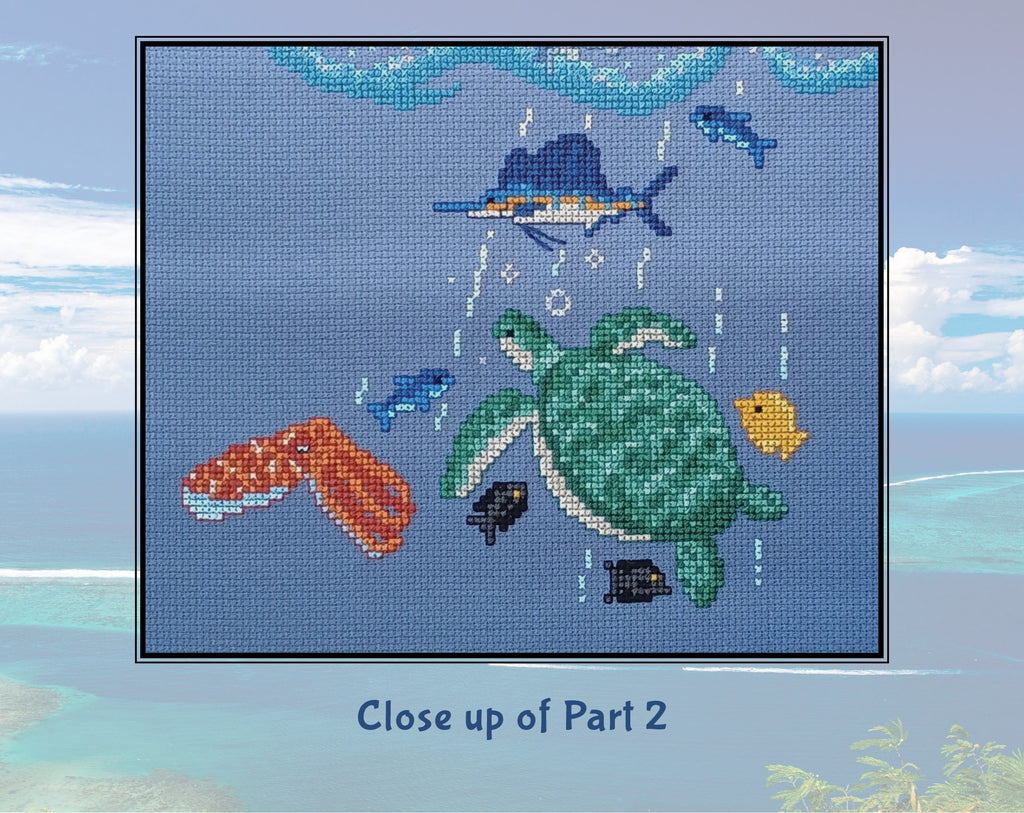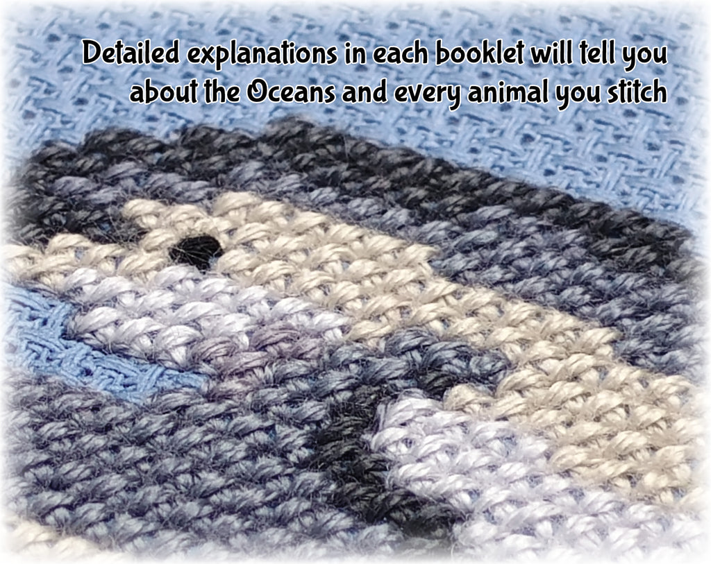 This listing is to purchase the Ocean: Wonders of the Seas Stitchalong! This is a large and beautiful piece showing a cut through of the ocean, teeming with wildlife, from above the surface to the deepest depths. All the animals are portrayed as accurately as possible. Once completed you will have a stunning heirloom cross stitch picture to treasure. The booklets include detailed explanations of everything you are stitching, so no prior knowledge of the oceans is needed.
