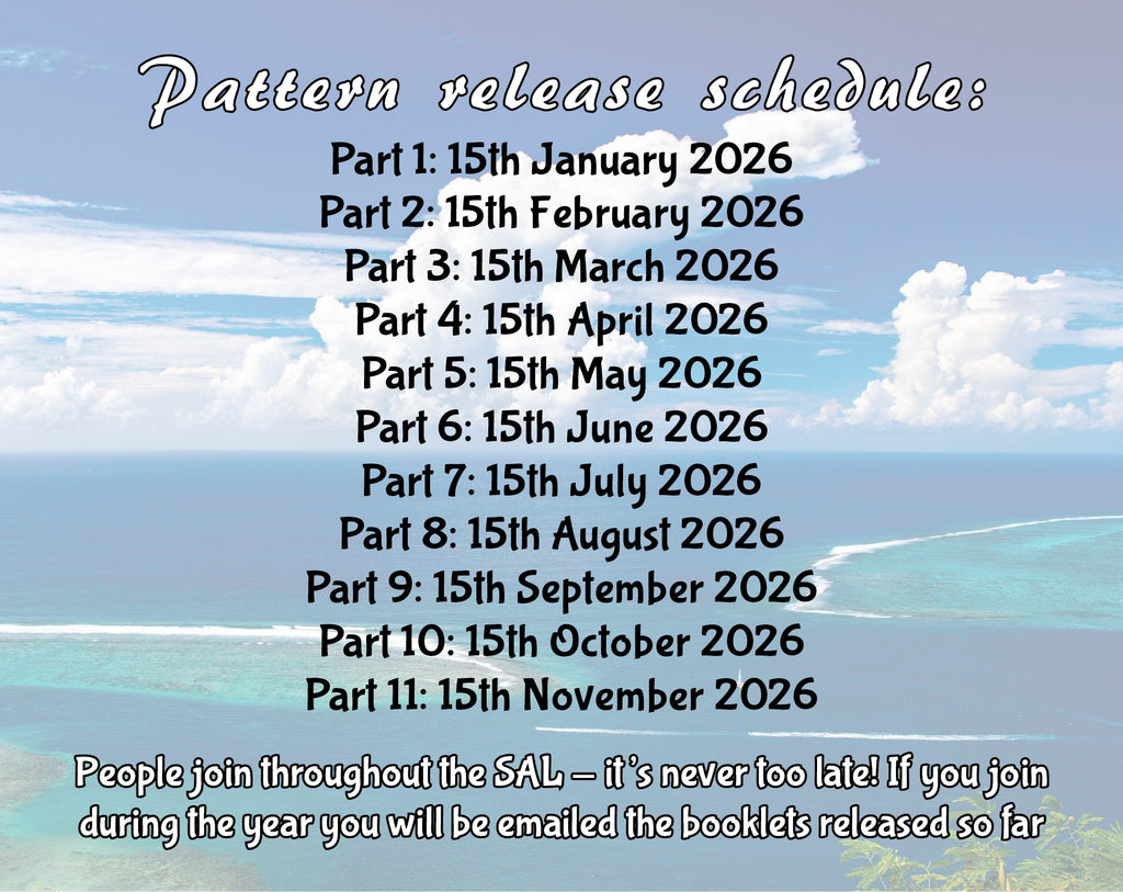 This is a mystery stitchalong, so you won’t see the other pattern sections until they are revealed each month. The stitchalong runs for 11 sections, from January to November 2026. The photographs in this listing show part of the first section.