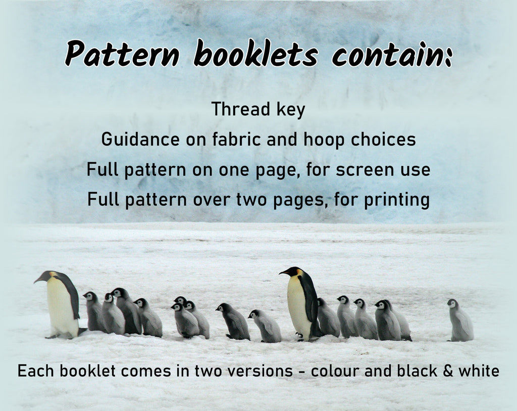 You will receive two PDF pattern booklets, one with charts with colour blocks and symbols, and one with charts with black and white symbols (with colour backstitch). Each booklet has a single page chart for screen use, and a split page chart for printing.