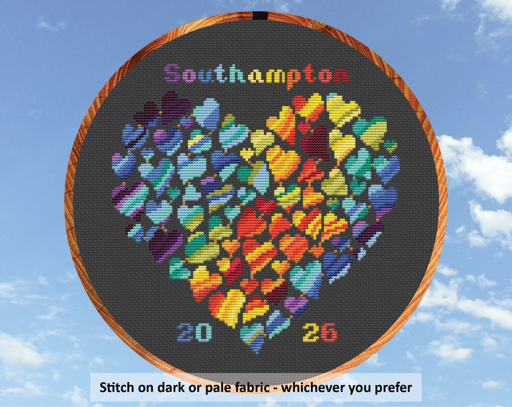 The Rainbow Temperature Heart cross stitch pattern booklets contain the charts and full instructions to cross stitch this piece in colours representing the maximum daily temperatures in your part of the world, through an entire year. The images show example Hearts based on temperatures in Southampton, UK - the colour distribution in your piece will be different according to the temperatures in your area and in your year, so every piece stitched will be unique.