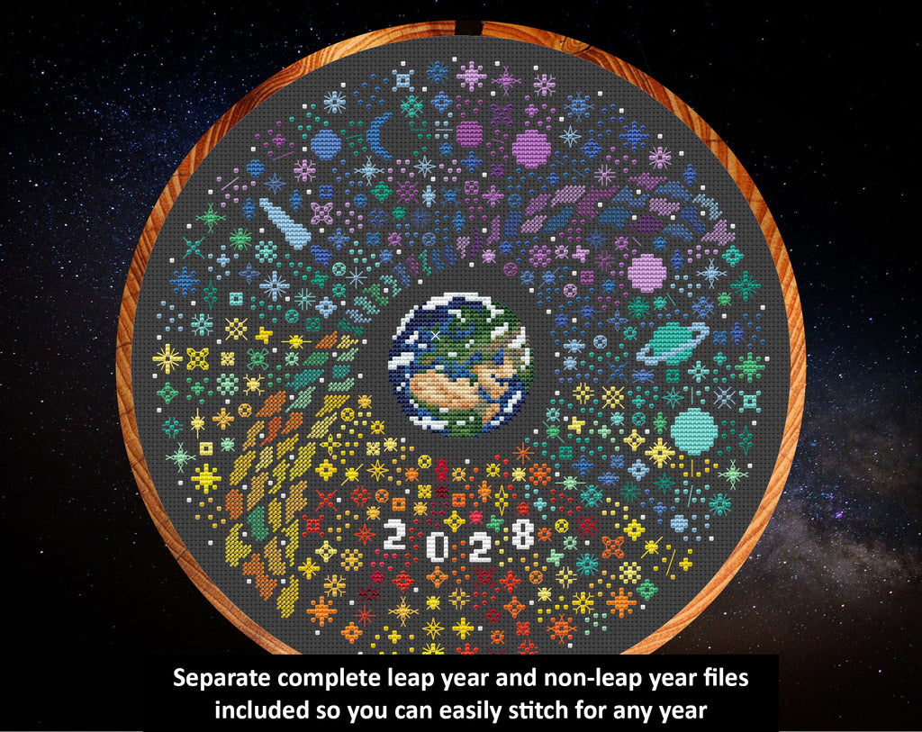 Two separate versions are included, for leap years and non-leap years, so you can easily stitch for any year.