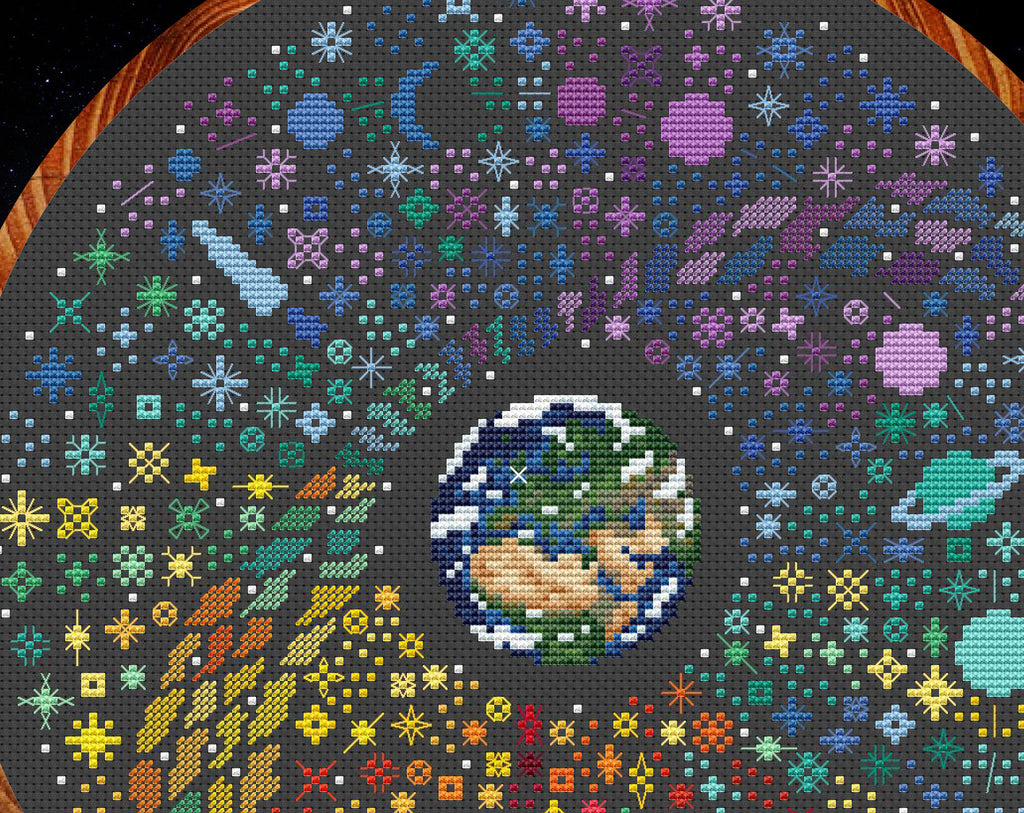 Six patterns of the Earth are included showing the vast majority of inhabited areas of the world. You can choose the pattern that best shows where you live and stitch it in the centre of your piece, and then mark where you live with a cross, as shown in the example picture for Southampton, UK. This set of Earth patterns is also available as a separate listing here.