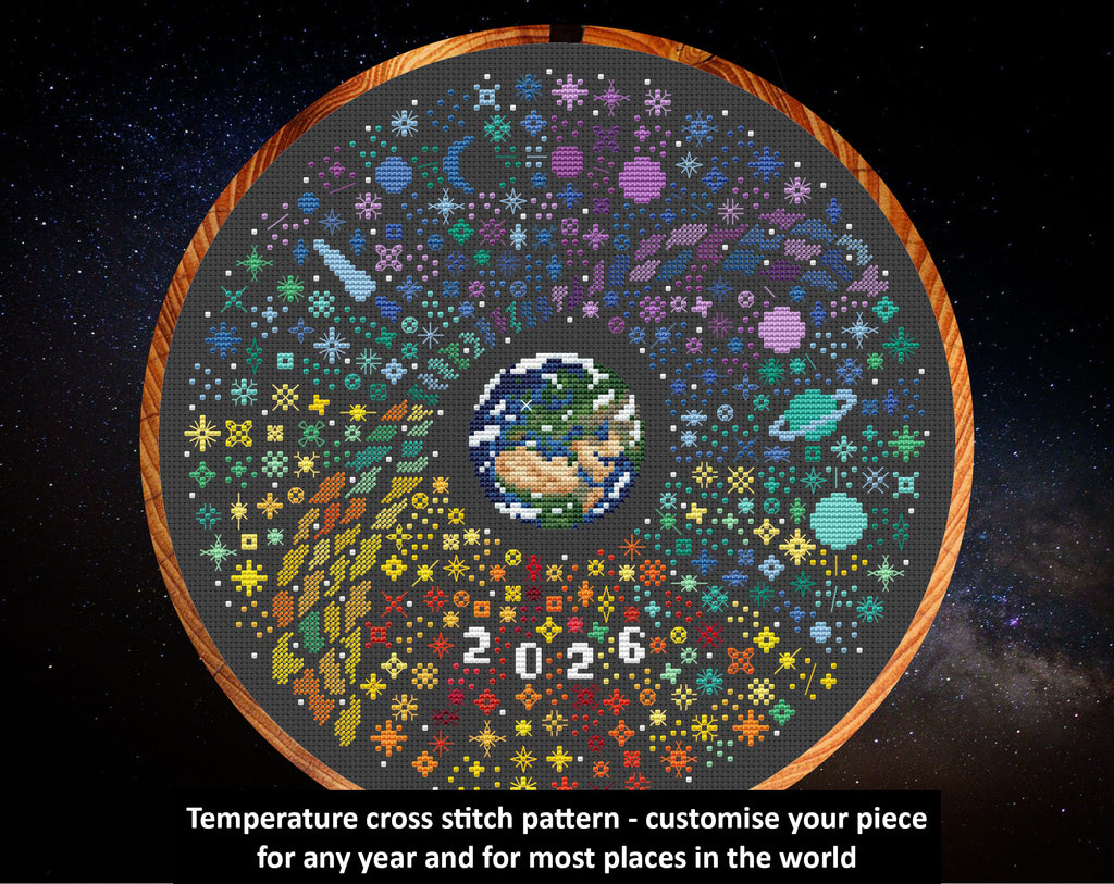 Very comprehensive instructions are included, explaining exactly where to stitch for each day and how to adapt the extensive temperature colour ranges to almost anywhere in the world. You don't need to worry if you live in a hot or cold climate, or if the temperature goes between extremes - you will adapt the colours to your own temperature range, so that you will still stitch with colours across the rainbow palette. You can use either Fahrenheit or Celsius scales for your temperatures.