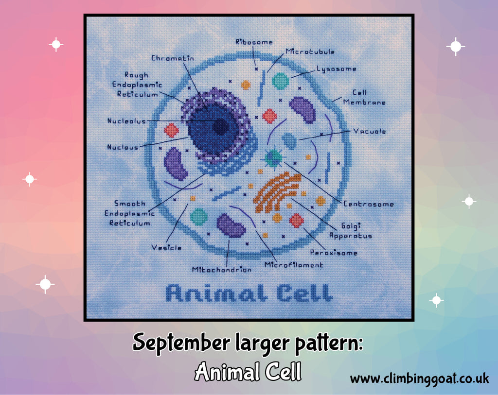 As a subscriber you will receive an email from Climbing Goat Designs every month. Every other month you will receive at least two patterns, on the same (or similar) science topic. One pattern will usually be larger (though usually not that large - often fitting 6 to 8 inch hoops) and one pattern will be smaller (often fitting 3 or 4 inch hoops, or maybe a bookmark or something similar). Sometimes these will be larger and smaller versions of the same design, and sometimes they are two completely different designs on the same theme. Occasionally there may be a set of mini designs instead of a larger design. The idea is that this gives lots of flexibility for you to stitch what suits you, according to how much time you have available and how much you are able to stitch. And you can of course stitch both patterns!